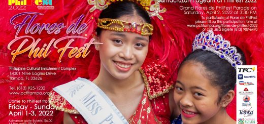 The Philippine Cultural Foundation, Inc. brings you PhilFest 2022 from April 1 to 3 at the Philippine Cultural Enrichment Complex (Bayanihan Arts and Events Center and Philippine Village) located at 14301 Nine Eagles Drive, Tampa, FL 33626.